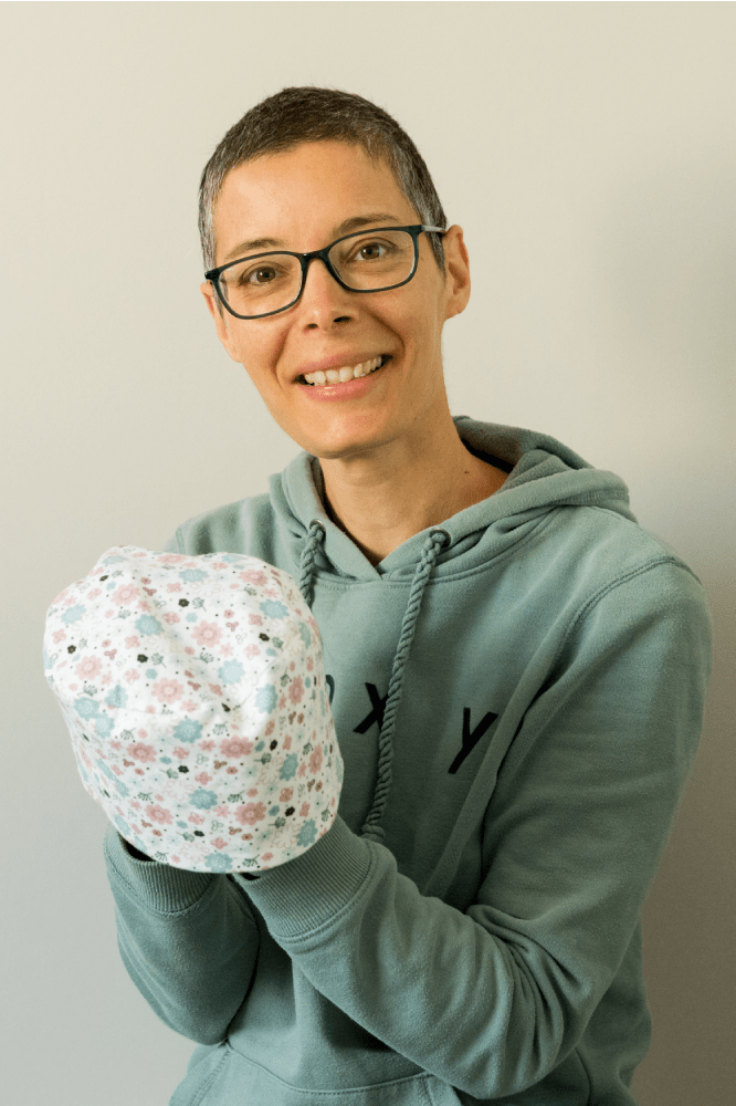 La maladie m’a clairement donné confiance en moi et j’ai vraiment le sentiment d’aider mes « sœurs de combat » en leur cousant de jolis bonnets de chimiothérapie.
