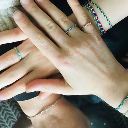 Julie est aussi une amie qui a soutenu Angeline pendant sa maladie. Elle lui rendait visite régulièrement d’un coup de vélo. Egalement, Julie lui envoyait un message d’encouragement à chaque chimio. Elle continuait à lui parler de mille projets. Enfin, Julie lui a offert un bracelet … toujours avec elle en chimio.