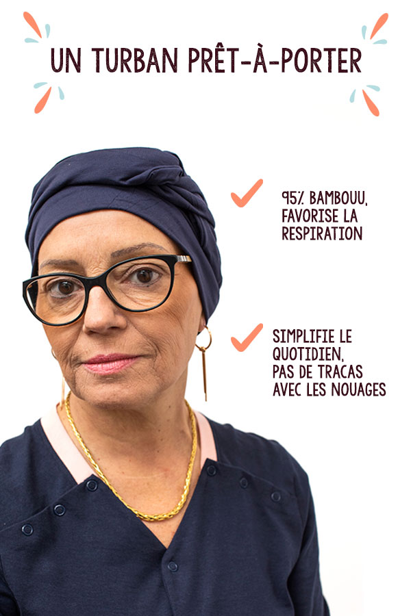 La perte des cheveux transforme l’image corporelle. Souvent vécue comme un traumatisme, elle peut entraîner un profond mal-être. Pour aider votre proche à préserver sa féminité, offrez-lui un turban élégant parfaitement assorti à son vêtement. En reboostant son estime et son moral, il lui apportera des réserves d’énergie pour mieux vivre cette étape du parcours de soins et aller jusqu’au bout des traitements. En la réconciliant avec sa nouvelle image, il lui donnera l’envie de rester connectée aux autres.