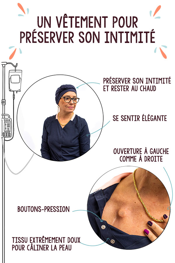 C’est le cas du vêtement. Pendant la maladie, on le rêve source de confort, de chaleur et de douceur, pour compenser l’agressivité des traitements. On le rêve alors pratique, facile à enfiler et à enlever pour tous les moments où il faudra se déshabiller. Mais également joli, pour aider à préserver une image malmenée…